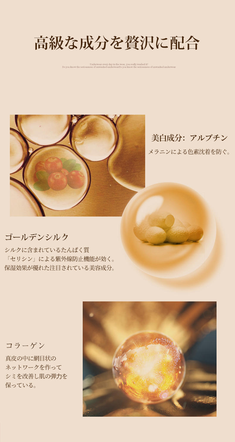 さらりと滑らかな肌触りと美しい光沢のある生地が特徴の「シルク」。シルクに秘められた美肌パワーには、驚きの理由がありました。それはシルクに含まれているタンパク質「セリシン」。このセリシンに含まれる18種類のアミノ酸が、ヒトの体を構成するアミノ酸と共通しているという点です。化粧品として肌にぬることでたくさんの美肌パワーが得られることで注目されています。シルクに含まれるセリシンは高い保湿サポートをしてくれる上に、老化を進める原因である「活性酸素」から守ってくれる働きもあるのです。そのため、シミやシワに悩んでいる方からも、シルクが持っている美肌パワーが注目の的になっているほど。また、紫外線吸収機能も備えているとのことで、エイジングケア成分としても期待されています。