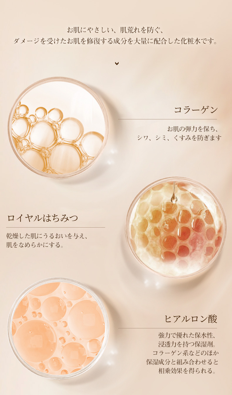 お肌の中からうるおいを与えることによりお肌を艶々にします。